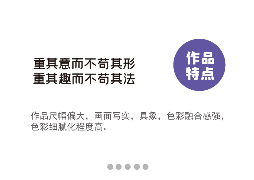 作品特点:作品尺幅偏大,画面写实,具象,色彩融合感强,色彩细腻化程度高。