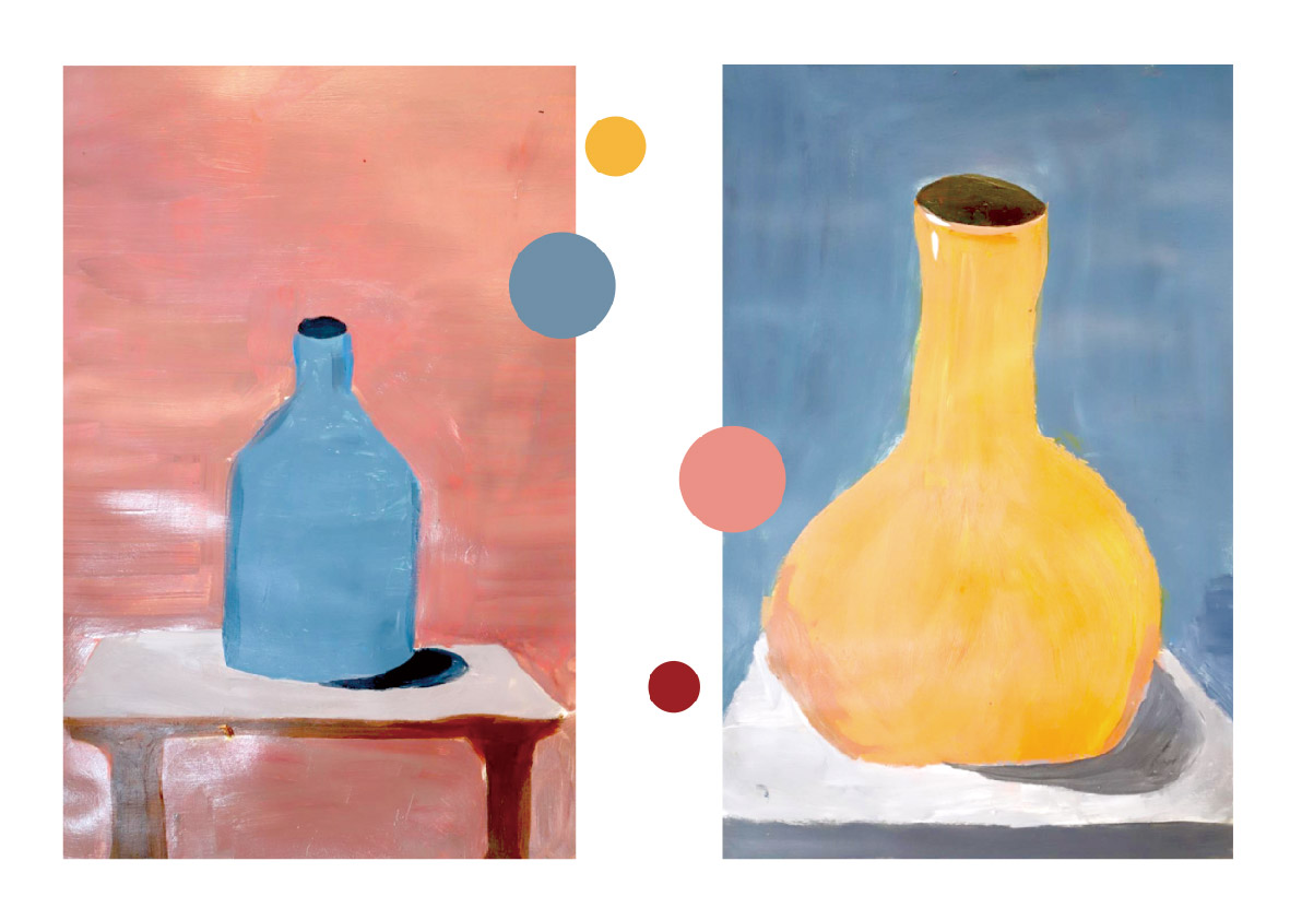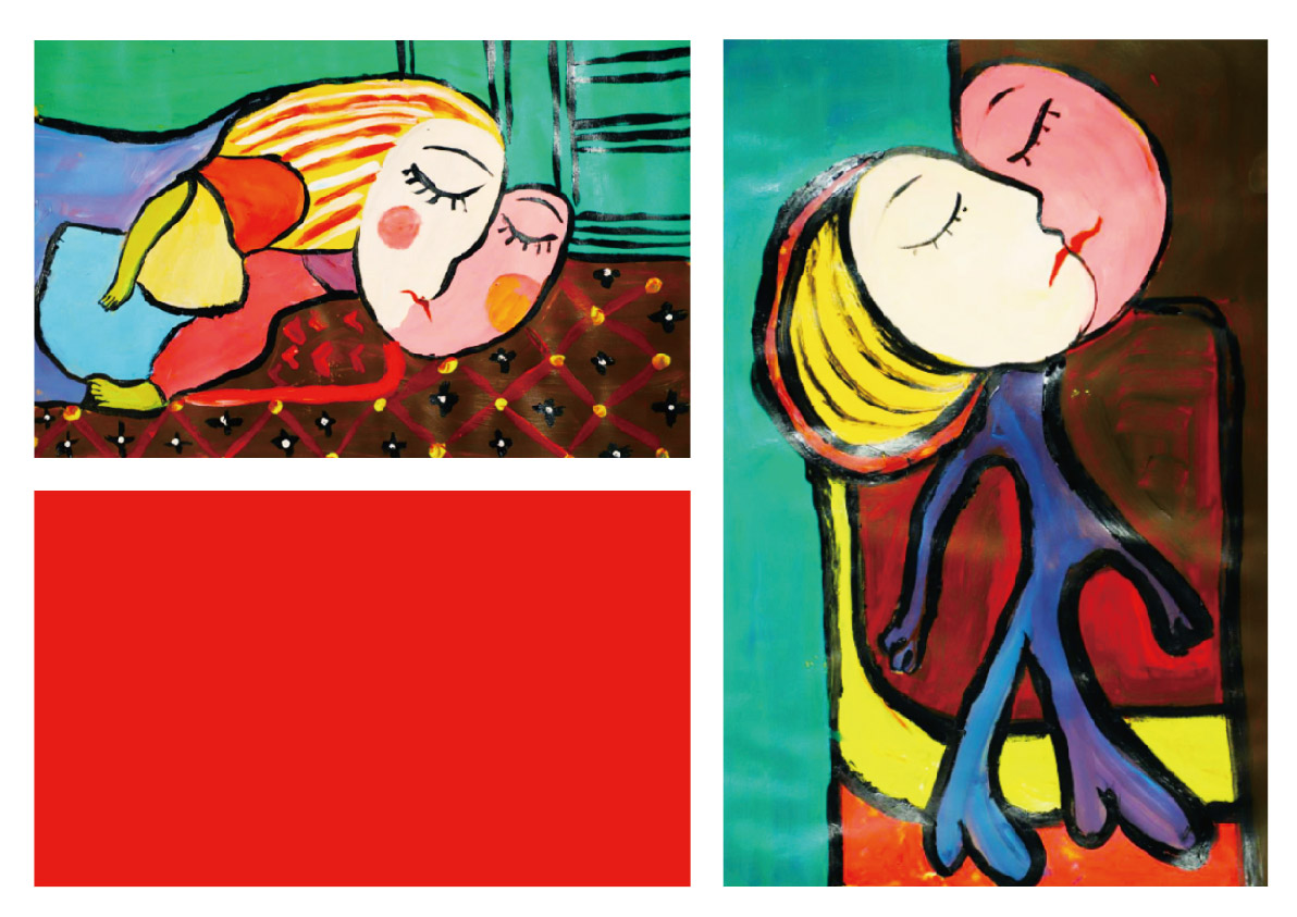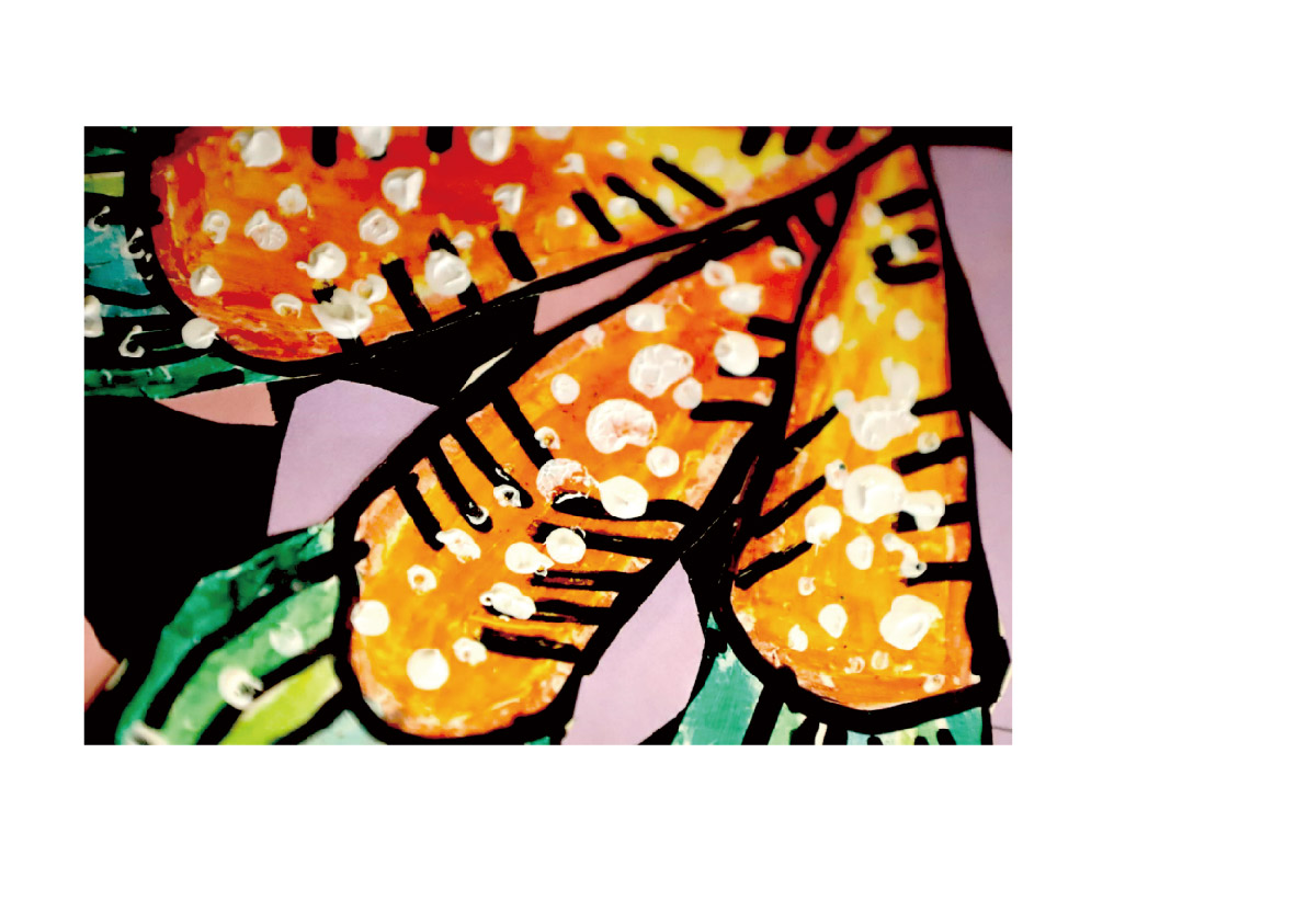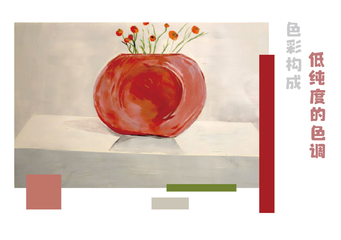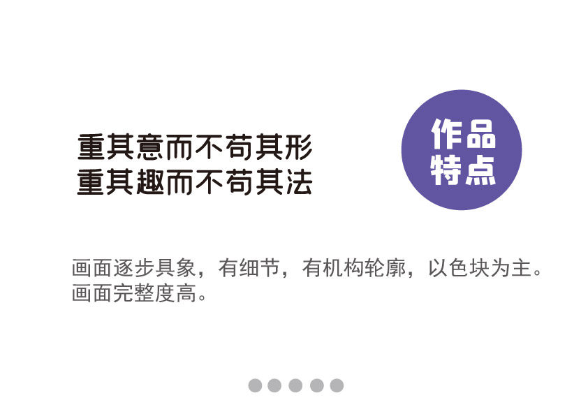 作品特点:画面逐步具象,有细节,有机构轮廓,以色块为主。画面完整度高。